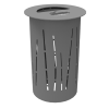 De afvalbak is verkrijgbaar met vlak of hellend deksel en standaard voorzien met een beperkte inwerpopening. De afvalbak kan naar keuze uitgevoerd worden in staal of RVS. Naar keuze voorzien van binnenbak of zakhouder. Optioneel kan deze nog uitgerust worden met peukenuitdrukplaat of geïntegreerde asbak met separate opvang. Deze ultra-robuuste afvalbak is niet onderhevig aan vandalisme door z’n zwaar-uitgevoerde – doch speelse romp.